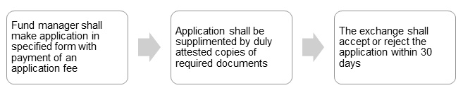 - The fund manager of any alternative investment fund shall make application in specified form as per Annexure 1 of Schedule-A of Chittagong Stock Exchange (Alternative Trading Board) Regulations, 2022 to the Exchange for listing and availing trading facilities at ATB with payment of an application fee of TK. 100 00.
